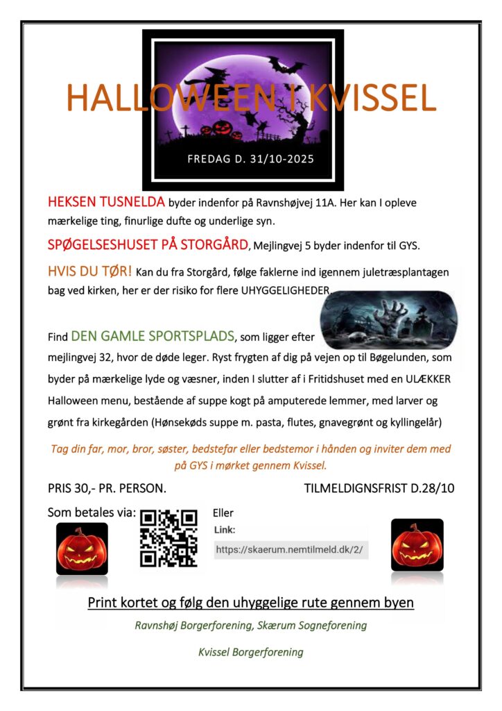 ( U ) hyggelig Halloween Snart er det tid for Halloween – igen i år, et fælles arrangement for Skærum, Kvissel og Ravnshøj