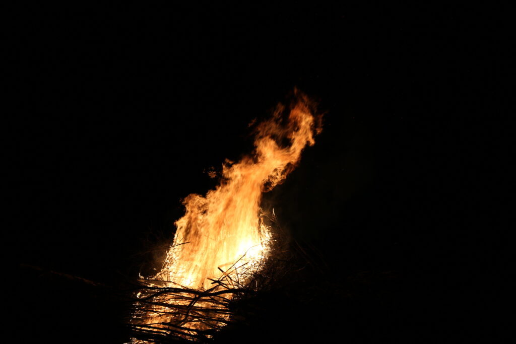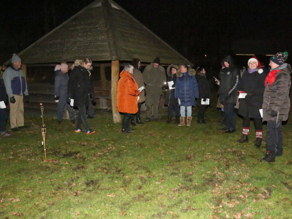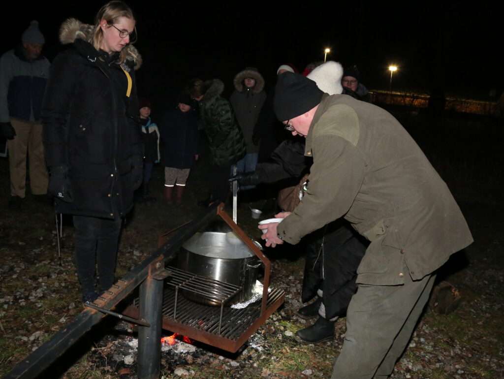 En ny tradition er skabt – omkring 40 mødte op til fejring af Vintersolhverv. Alle blev mødt af tændte fakler og på pladsen blev bålet tændt ( Sankt Hansbålet). Efter et par julesange og lidt snak blev der serveret varm aspargessuppe. Der var varm cacao og mulighed for at lave skumfiduser på bålet.