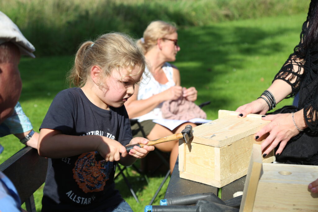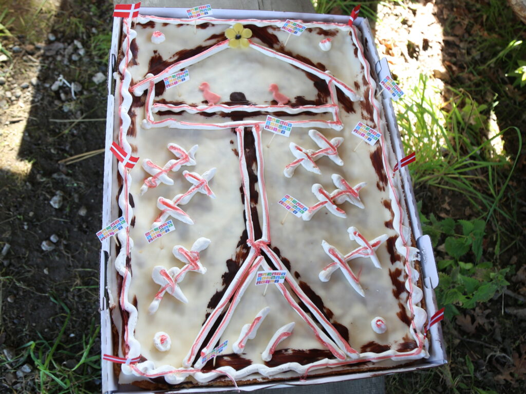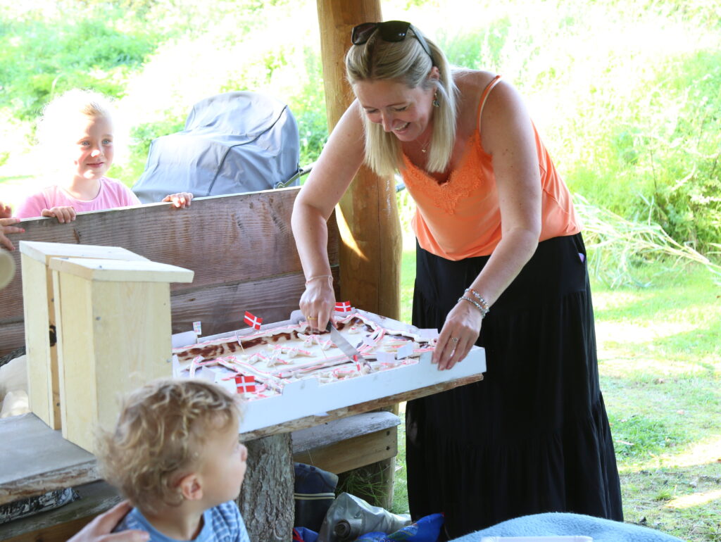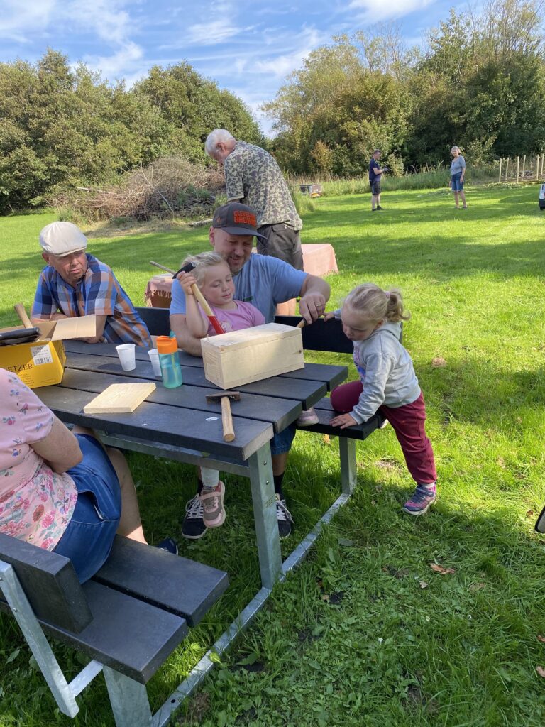 Christina Lykke – medlem af Verdensmåls udvalget kiggede forbi og sagde ” TAK for at I har grebet ideen med et arrangement på dette skønne sted i jeres lokalområde. Verdensmål – Natur – Sammenhold – Bosætning for insekter og fugle . Et rigtig flot arrangement I har lavet. Så var det tid for kagemand.